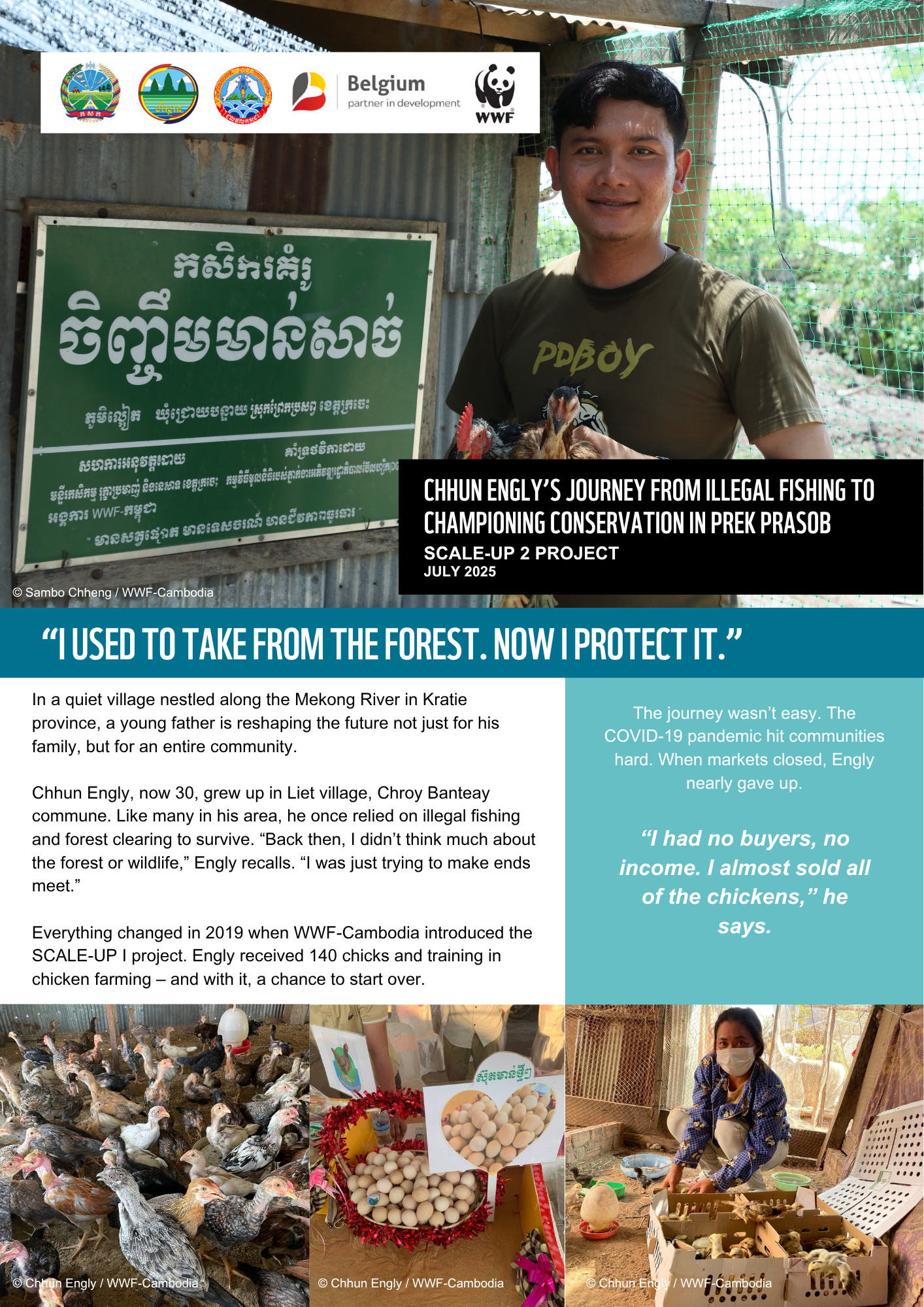 Everything changed in 2019 when WWF-Cambodia introduced the SCALE-UP I project. Engly received 140 chicks and training in chicken farming – and with it, a chance to start over.
